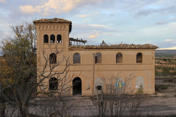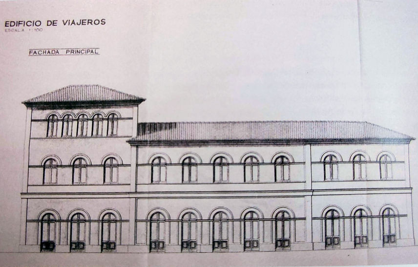 Recreación de la antigua estación de ferrocarril de Las Cuevas a partir de una imagen de archivo de la estación de Palancares (Cuenca).
